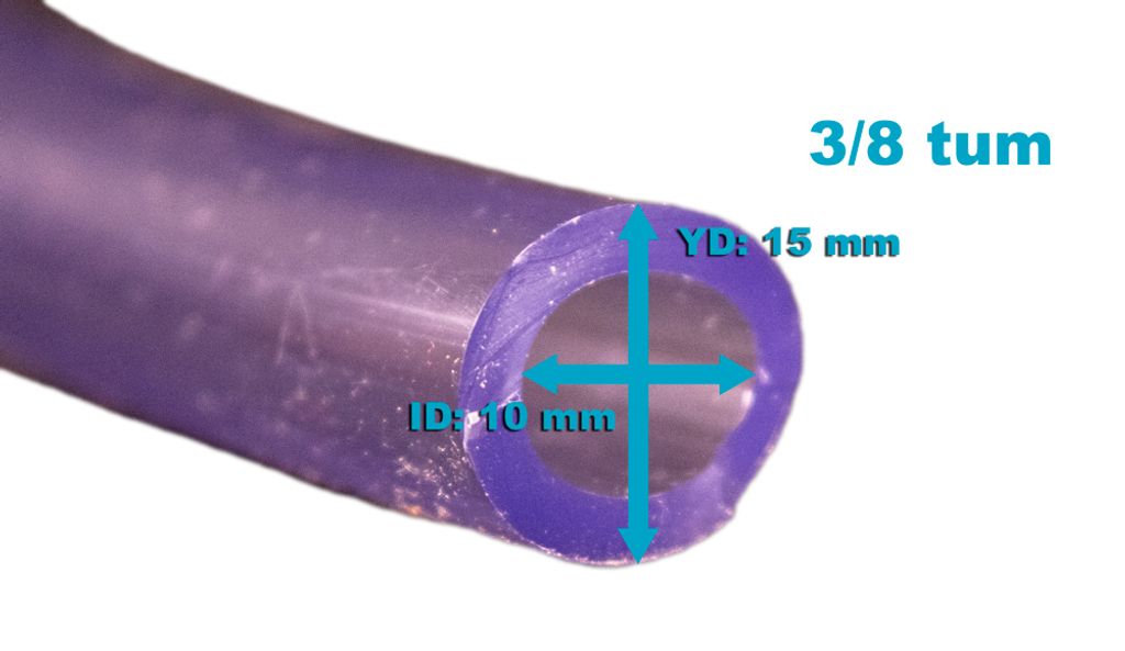Beskrivning av Tryckslang 3/8 tum (YD 15 mm, ID 10 mm), transparent