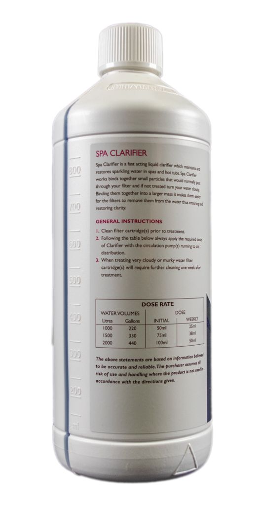 Grundläggande anvisningar: Clarifier kommer att få ditt vatten att gnistra genom att de minsta partiklarna klumpas ihop och fastnar i filtret. Använd det varje vecka för att hålla vattenkvaliten i schack. Hjälper till att förhindra uppkomst av alger och missfärgningar.